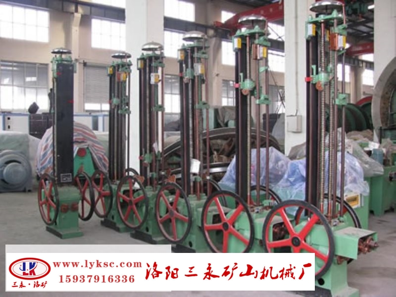 梯形螺母上不僅裝有指針,而且還有裝有掣子和碰鐵,當(dāng)提升容器接近井口卸載位置時(shí),掣子帶動(dòng)信號(hào)拉桿上的銷子,將信號(hào)拉桿漸漸抬起,同時(shí)銷子在水平方向也在移動(dòng),當(dāng)達(dá)到減速點(diǎn)時(shí)銷子脫離掣子下落,裝在信號(hào)拉桿上的撞針敲擊信號(hào)鈴,發(fā)出減速開始信號(hào),在信號(hào)拉桿旁邊的立柱上固定有一個(gè)就愛你素極限開關(guān),當(dāng)提升容器到達(dá)一定位置時(shí),信號(hào)拉桿上的碰塊碰減速器開關(guān)的滾子進(jìn)行減速,直至停車。若提升機(jī)發(fā)生過卷,則梯形螺母上的碰鐵將把過卷揚(yáng)極限開關(guān)打開,進(jìn)行安全制動(dòng)。